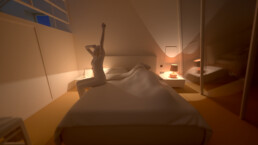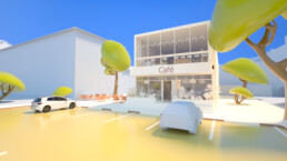 Modellieren einer grafisch reduzierten Welt, Shading, Lighting, Texturing. Animation von Kamera und Produkten. Rendering.