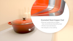 Die freundliche Welt greift die Farben der Marke und der Metalle auf. Die Produkte sind realistisch dargestellt.